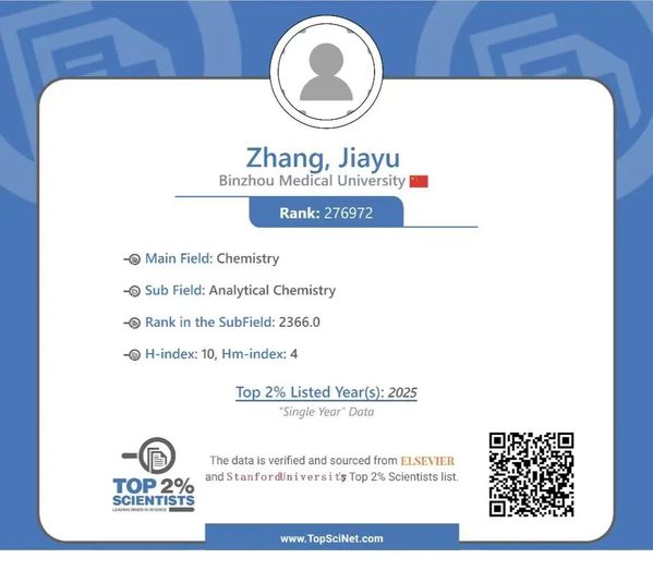 近日,美国斯坦福大学和爱思唯尔数据库发布《全球前2%顶尖科学家榜单2025》,我院张加余教授凭借在化学(分析化学方向)的卓越成就,成功入选!
